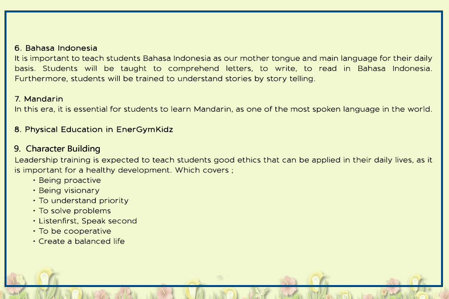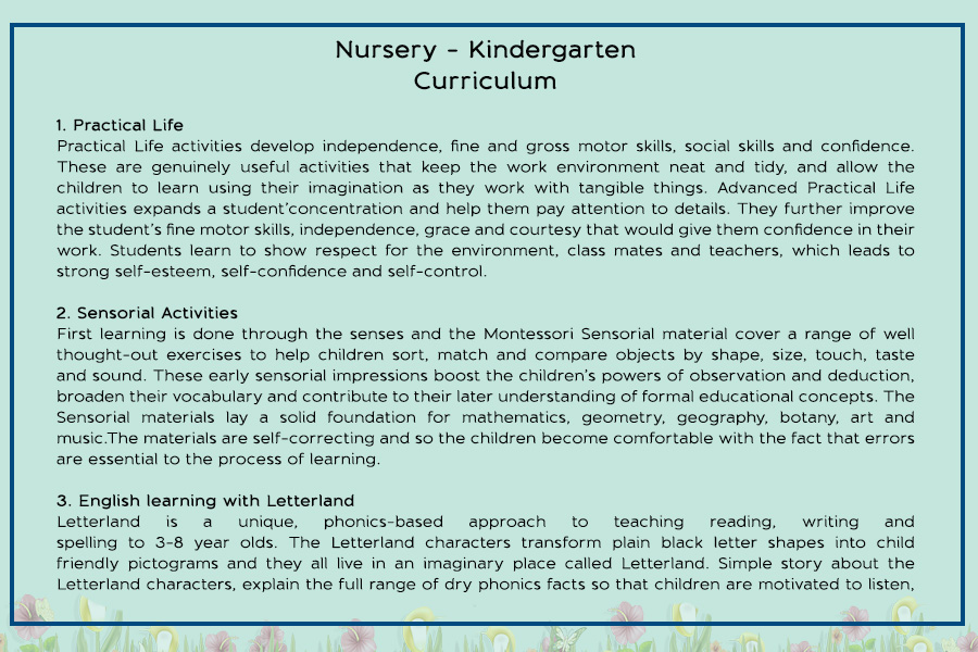 • Pre Nursery and Kindergarten
